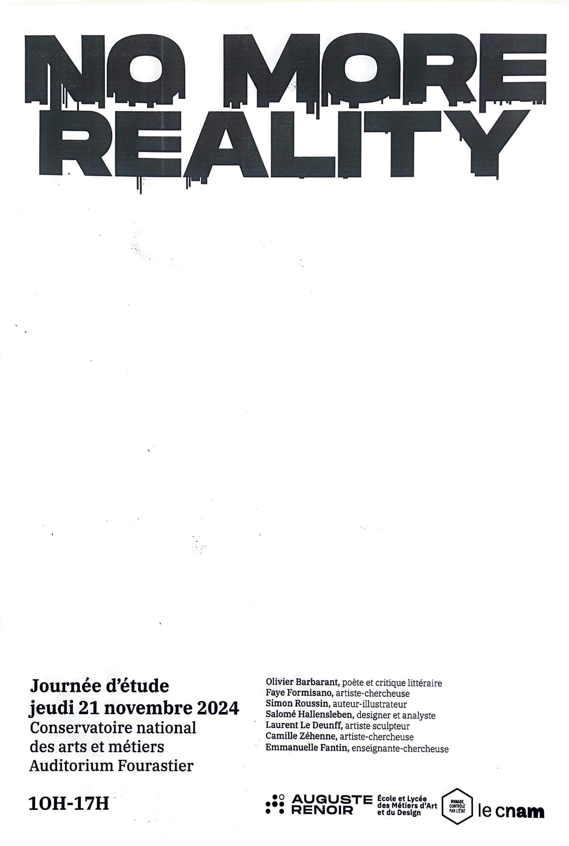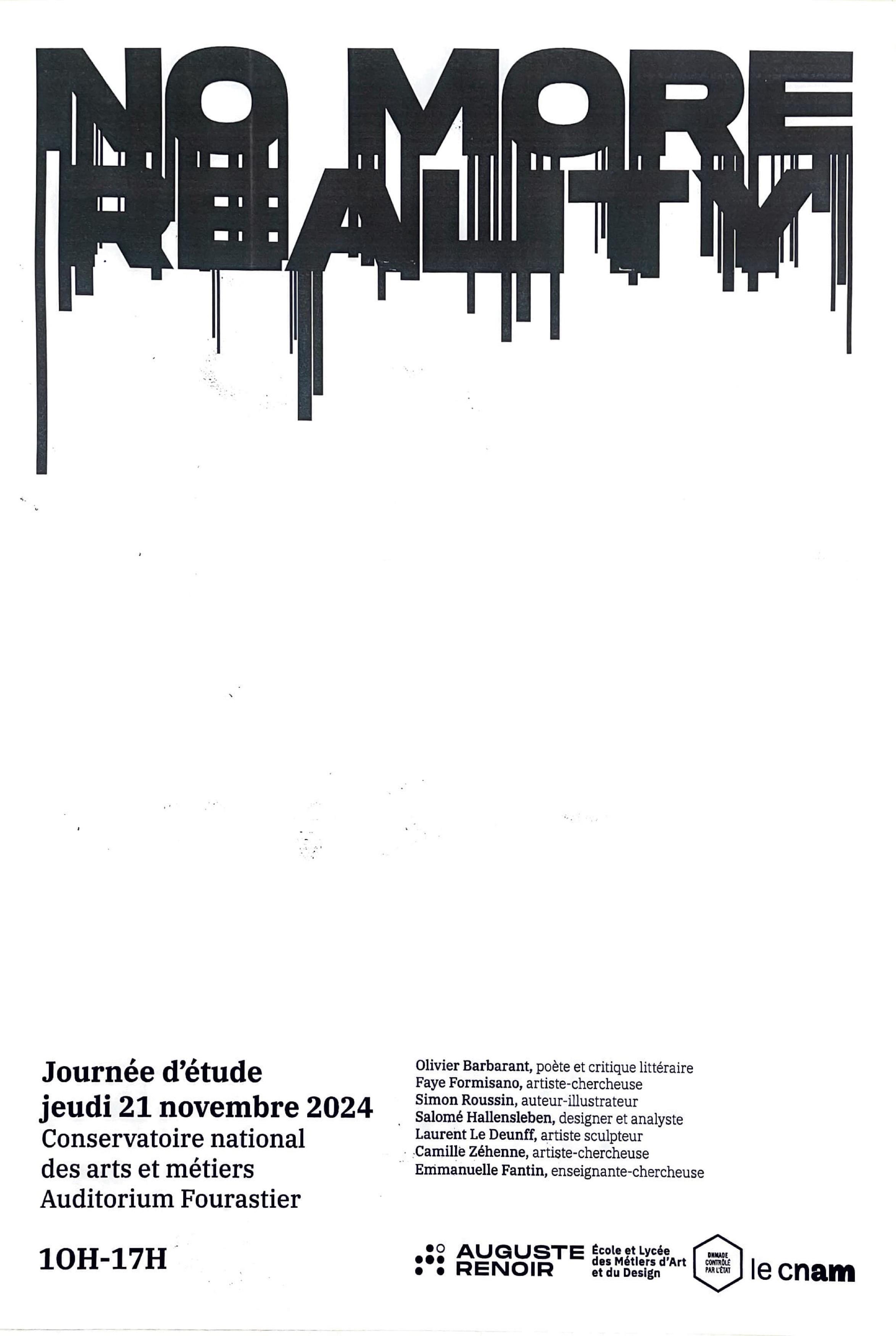 Journée d'étude au CNAM sur la thématique: No More Reality